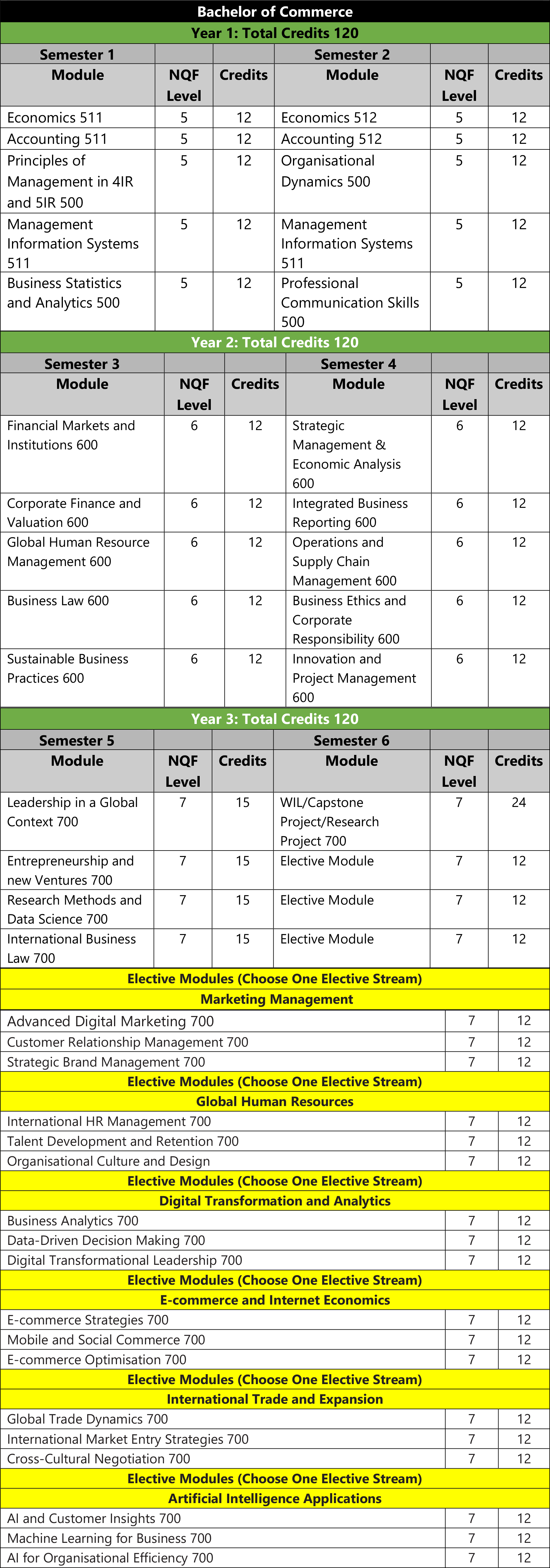 Horizontal Articulation: Advanced Diploma in Management (NQF Level 7), Bachelor of Business Administration (NQF Level 7). Vertical Articulation: Bachelor of Commerce Honours (NQF Level 8), Post Graduate Diploma in Management (NQF Level 8).