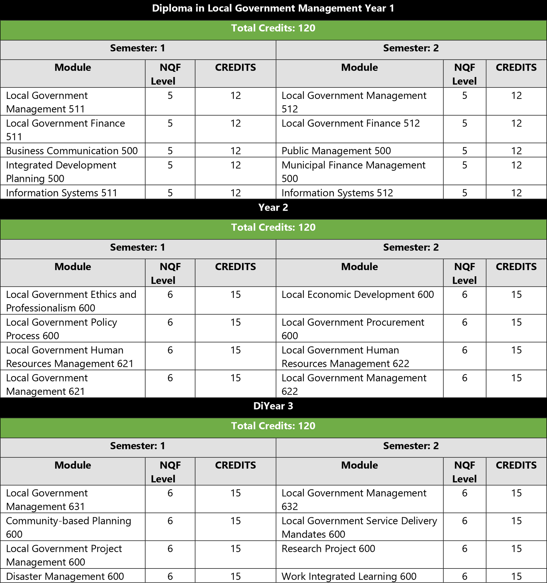 Upon completing the Diploma in Local Government Management, graduates will be able to: