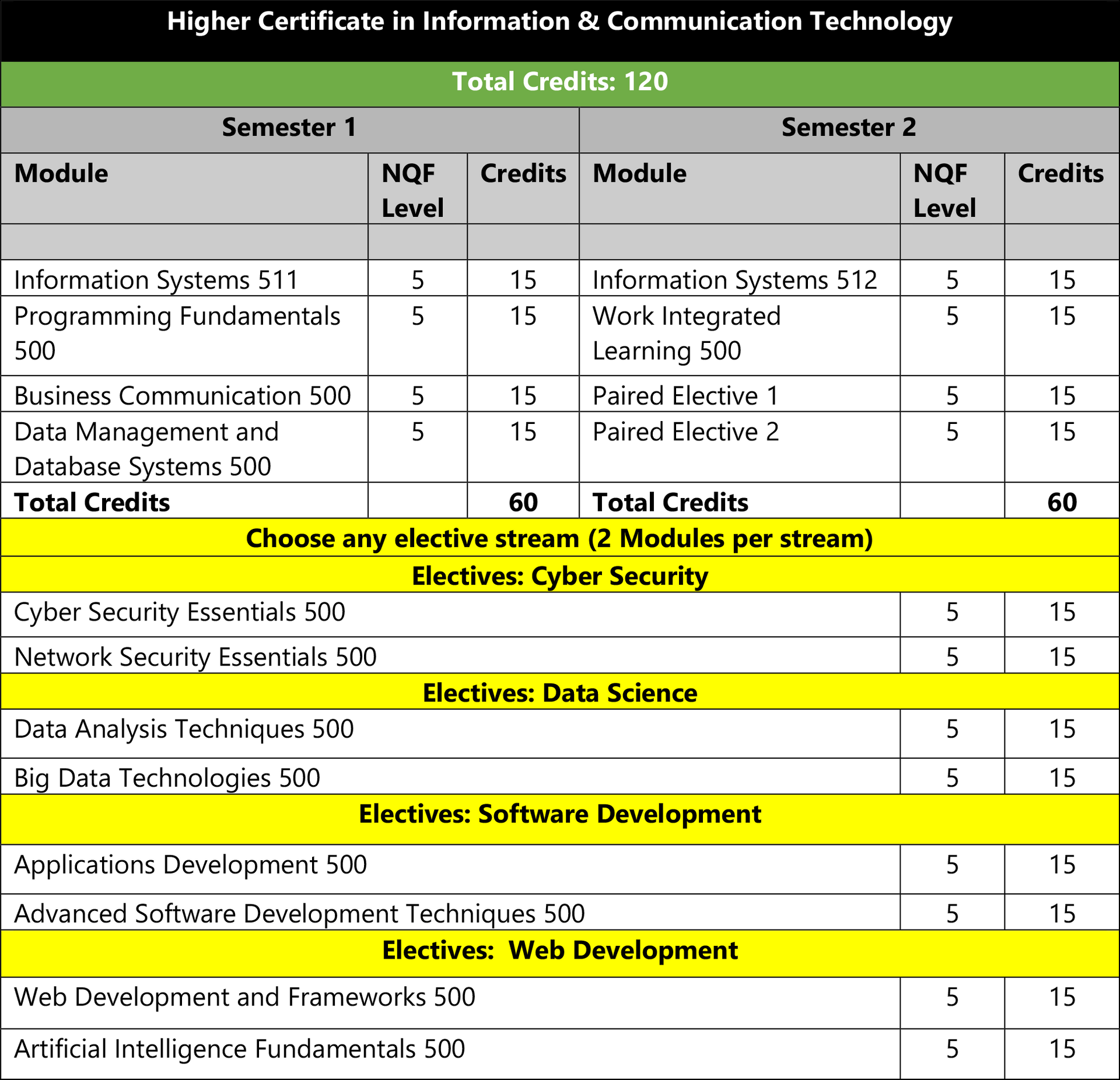 Progress to Diplomas in IT, Computer Science (NQF Level 6), or Degrees in ICT, Future Technologies, or AI (NQF Level 7).