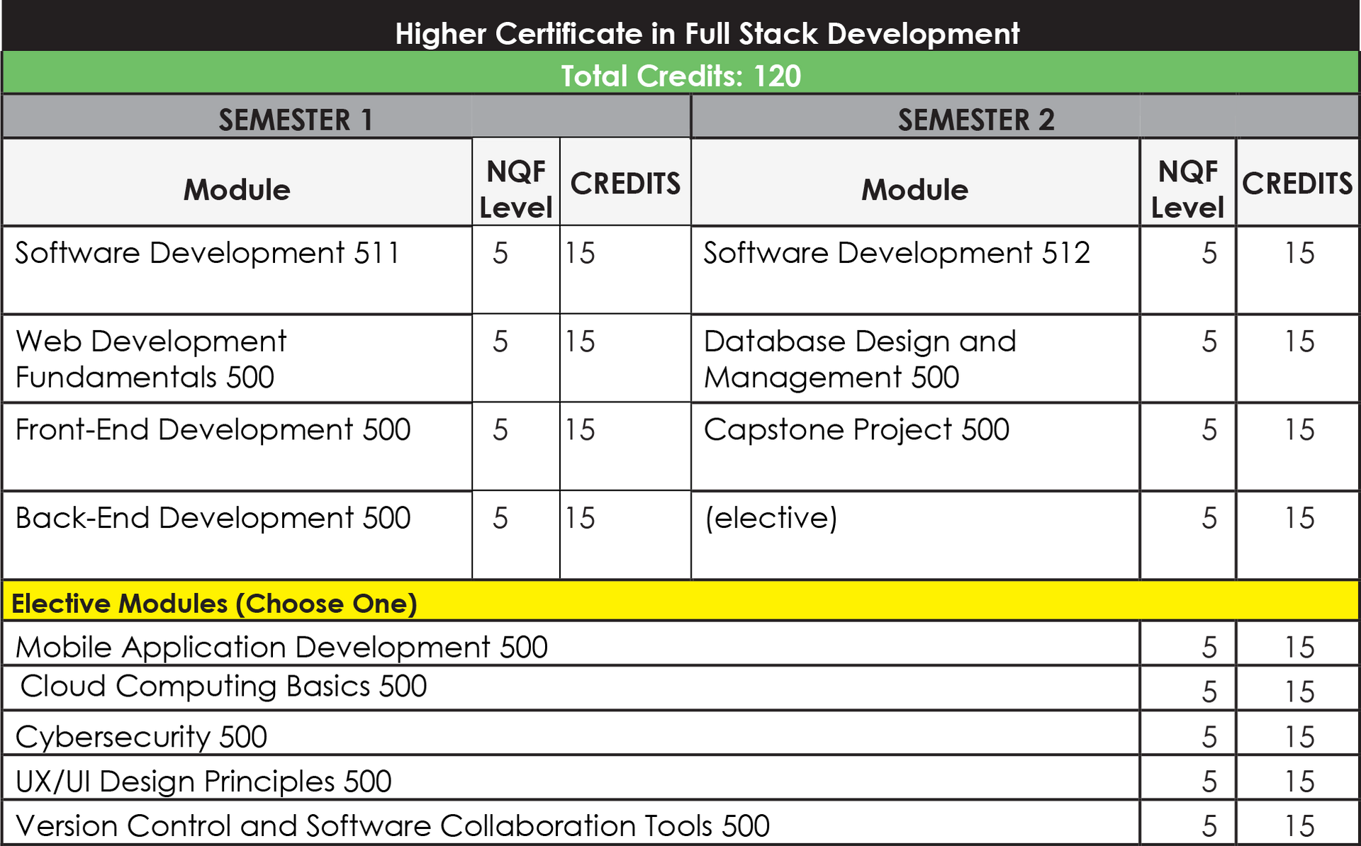 - Horizontal: Higher Certificate in Information Systems (NQF Level 5).