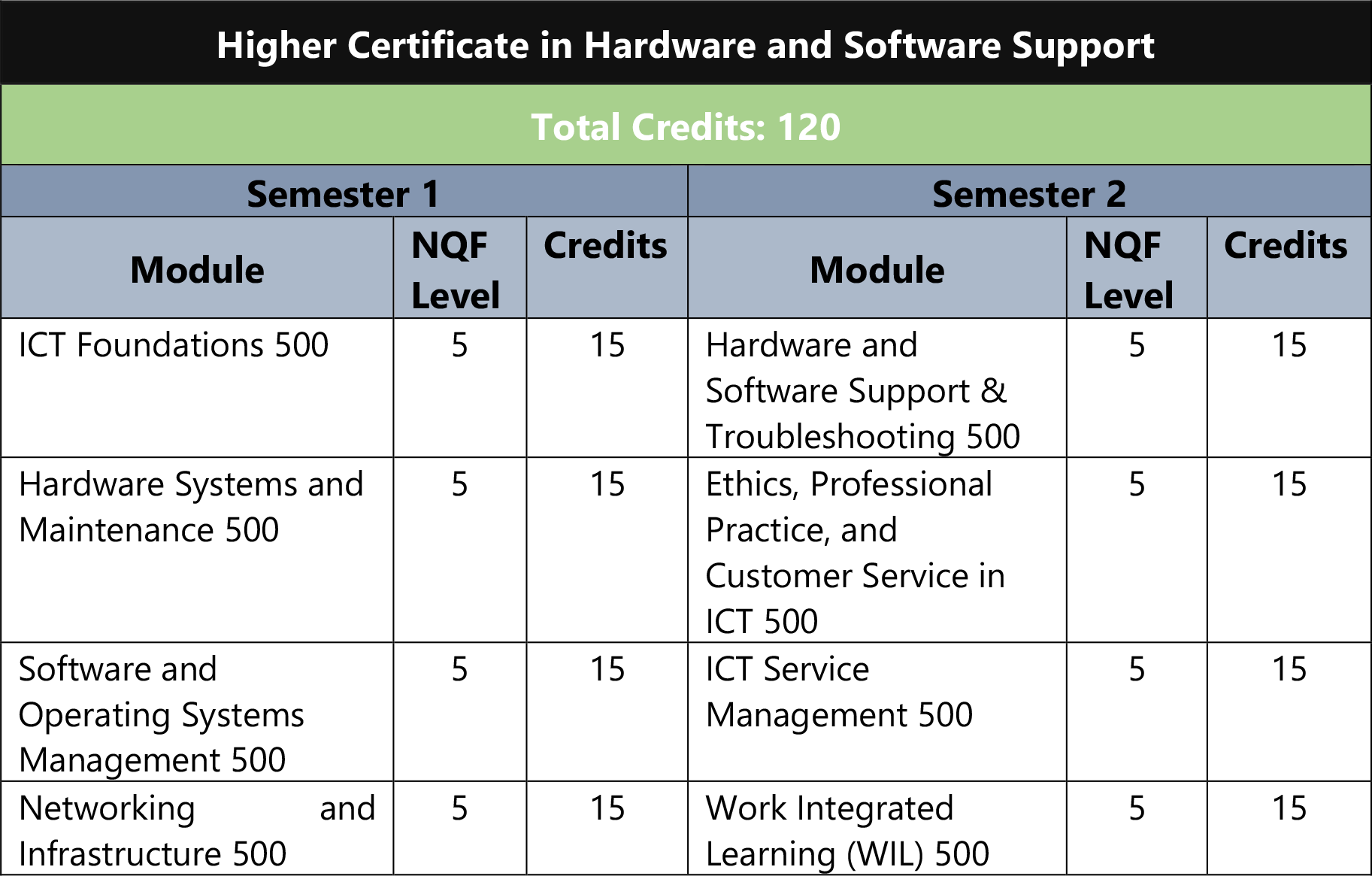 - Advanced Certificate in Information Technology (NQF Level 6)