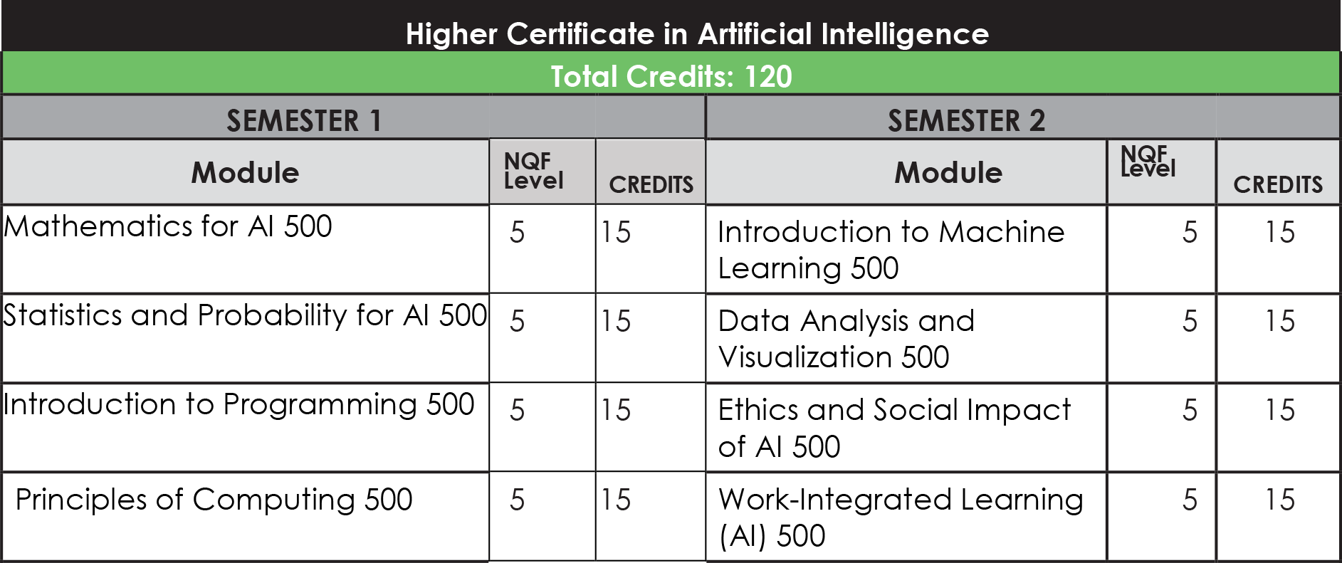 • Higher Certificate in Systems Development (NQF Level 5).